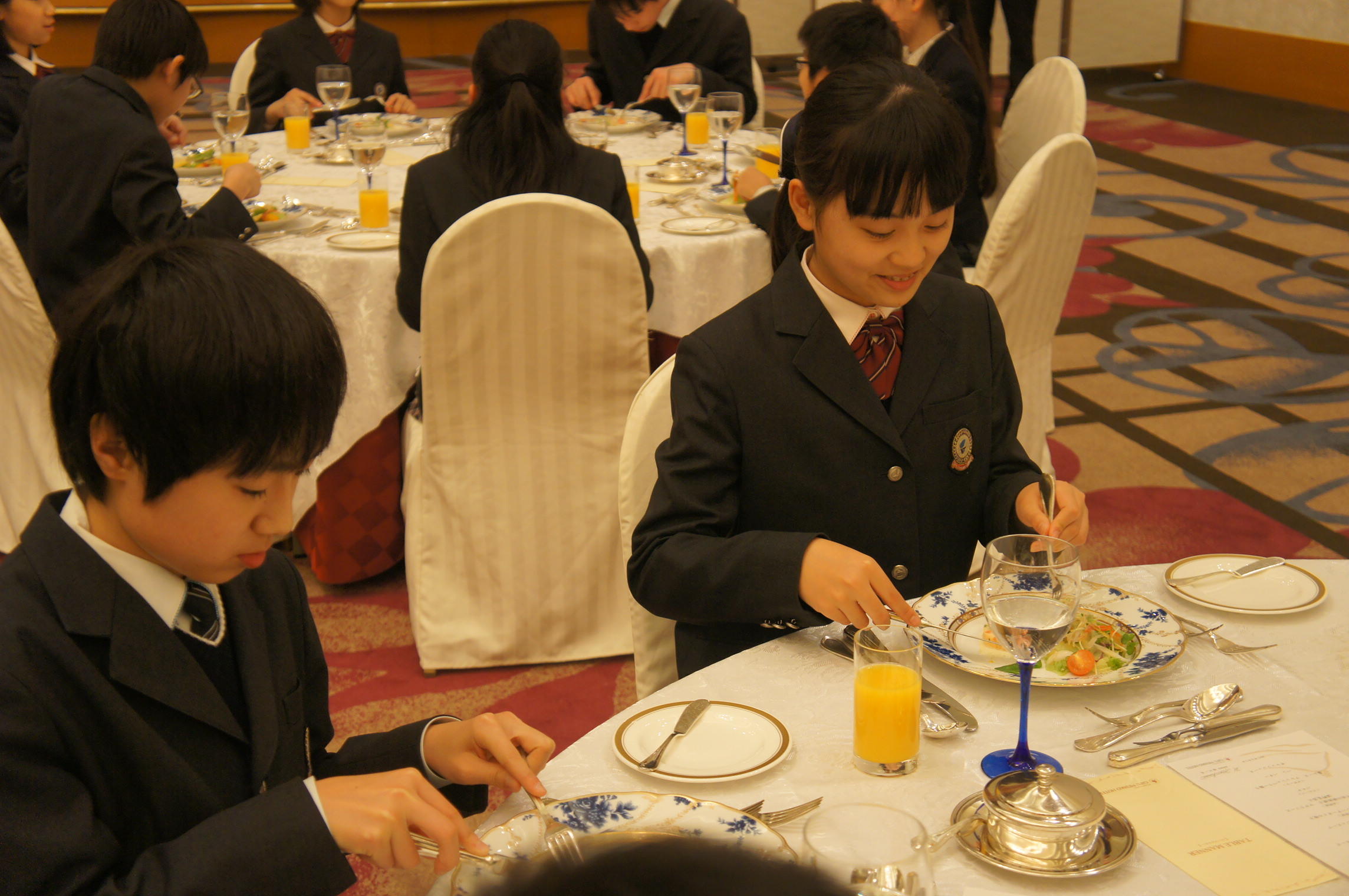 日本の小学校では、学生達にテーブルマナーを教えます。