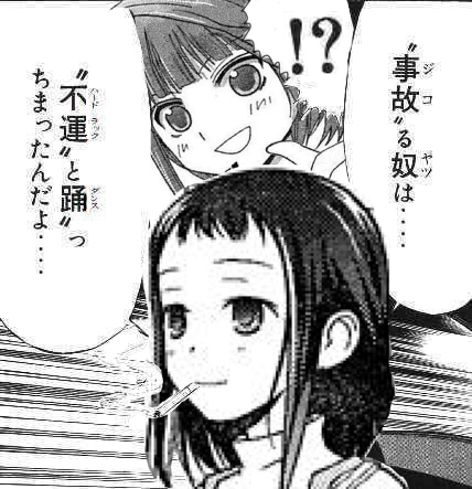 例)「わらわ」を使い、高貴な人という設定をイメージさせる等「“事故”る奴は“不運(ハードラック)”と“踊(ダンス)”っちまったんだよ……」