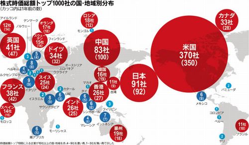 韓国中央日報・ 世界時価総額トップ500に韓国企業3社も・日本は・・・・・・