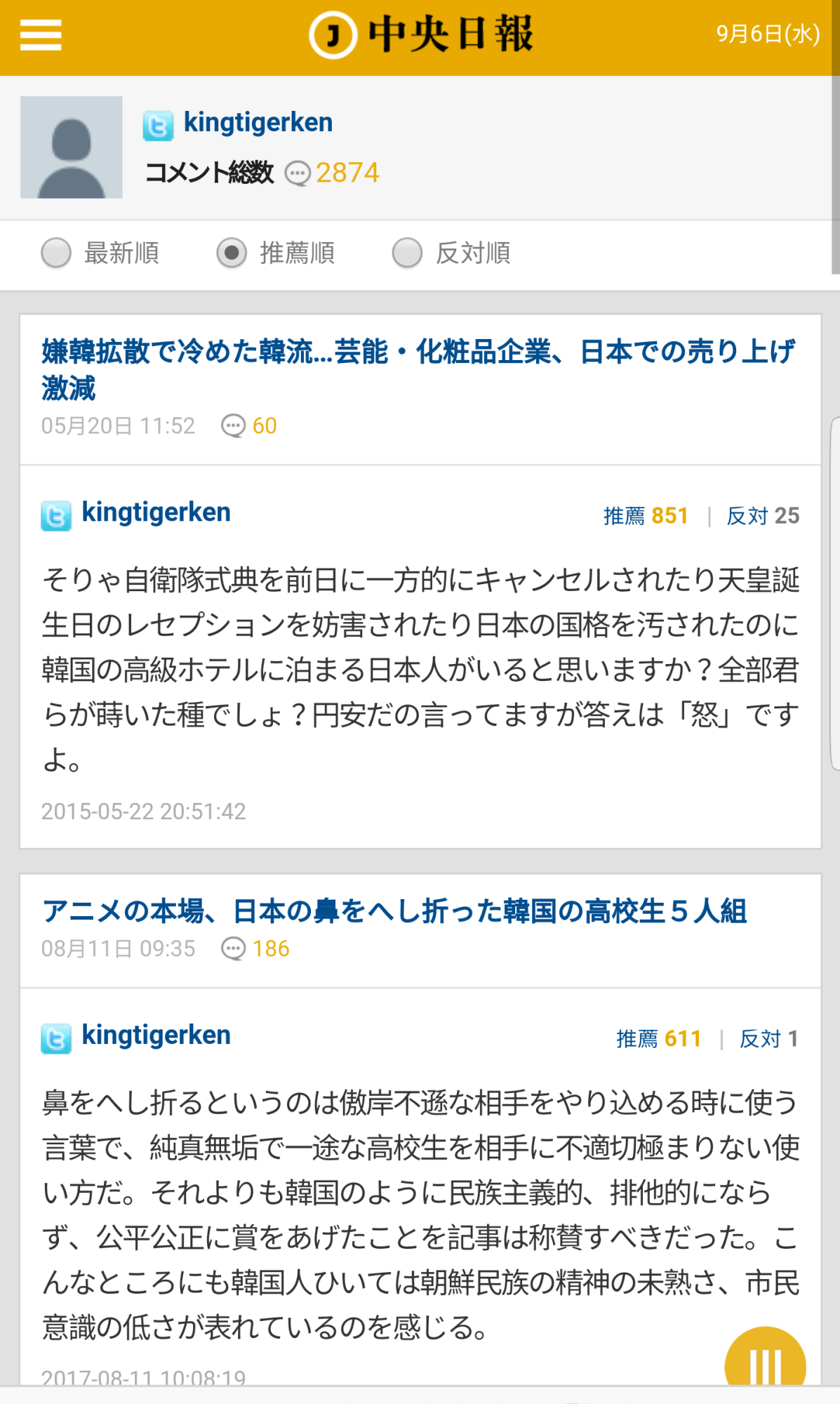 「kingtigerken」って韓国語でもツイッターやってる「王虎✿왕호」なのかな?ブサヨは自国民だけじゃなく
