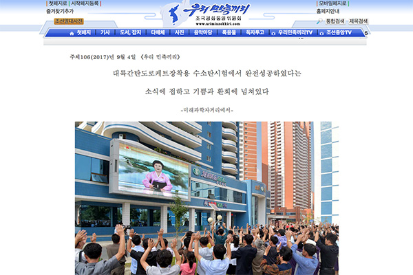 水爆実験の成功を伝える公式サイト「わが民族同士」重複スレです。韓国・小説で検索してもなかったので失礼しました。