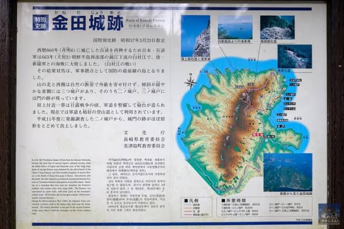 韓/朝鮮半島の統一戦争である白村江の戦い(AD662)の際には、百済の要請で援軍に出た大和朝廷の集結地点として機能し、敗戦後は唐・新羅連合軍に対する最終防衛ラインとして防人の駐留基地だった。