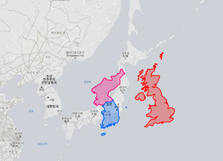 조선반도 실제크기