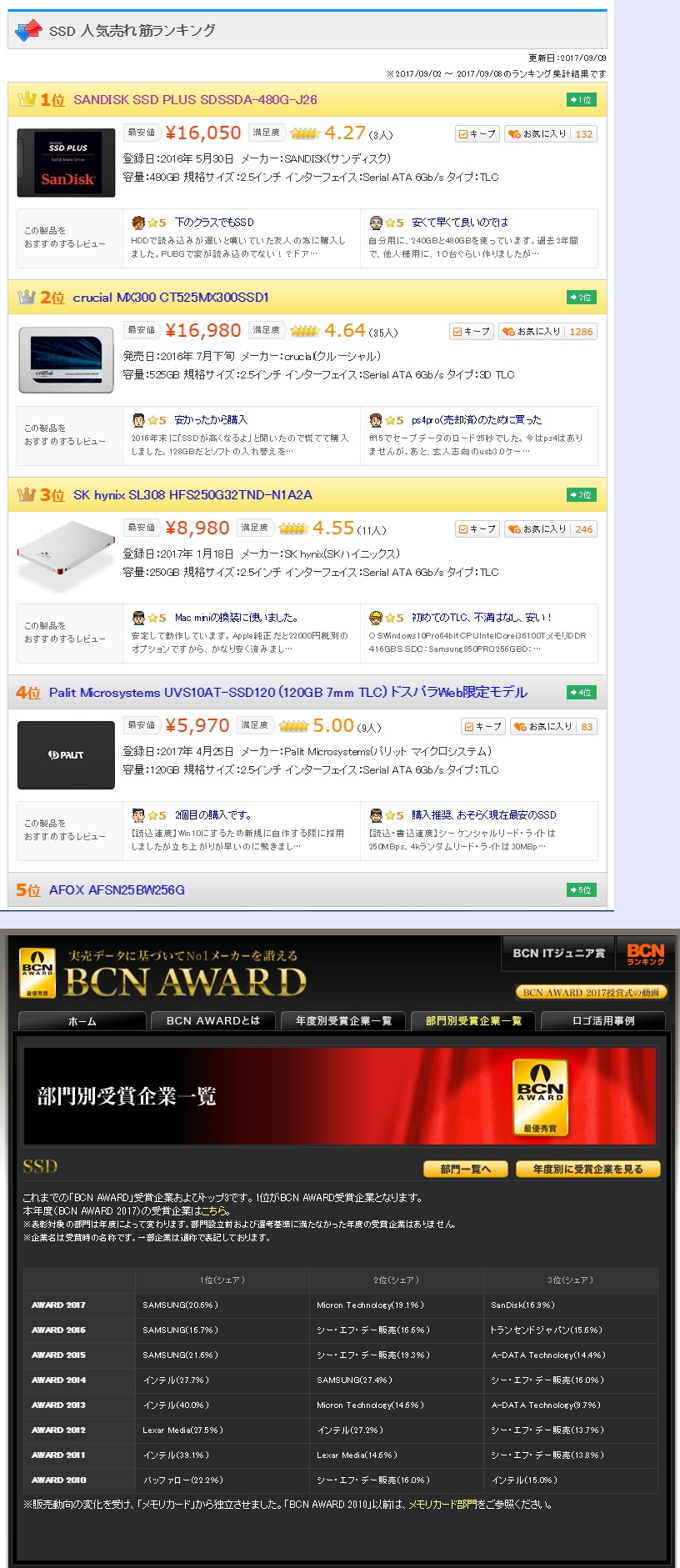 しかし、現在のサムスンのSSDは耐久性は上がっているので、部品としてサムスンが使われているのであればそれを選択する人もいる。>>1
