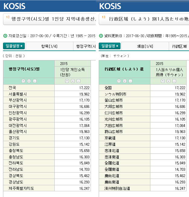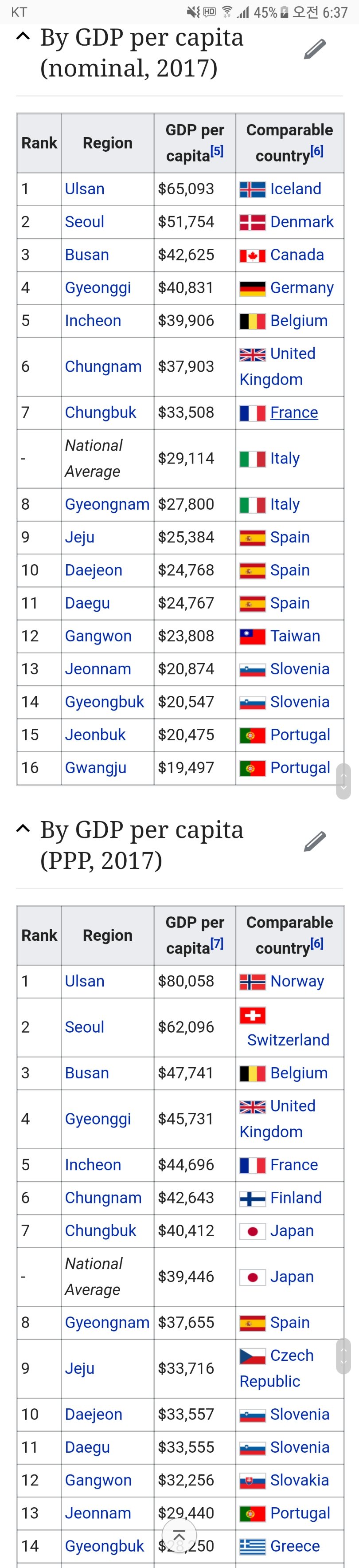 한국의 주요도시 소득수준은 유럽수준입니다.