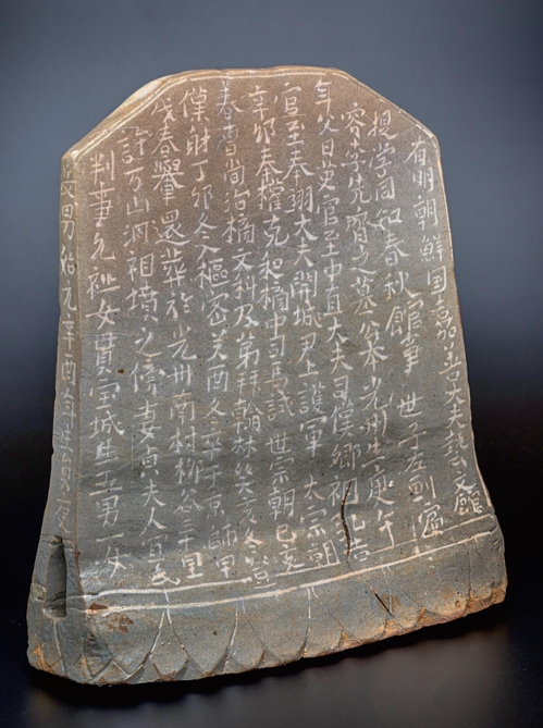 寄贈されたのは15世紀の朝鮮王朝初期に高官を務めた李先斉の事績を刻んだ墓誌。盗掘の時期や犯人は分かっていない。李先斉は南西部地域を代表する歴史上の人物で、史料としてだけでなく美術品としての価値も高いとされ、国指定文化財に登録される可能性もある。(共同)>>5