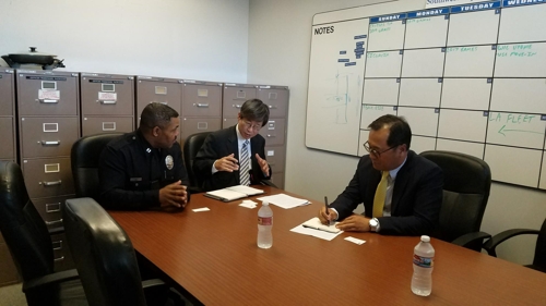 10日(現地時間)LA総領事館によると、イ・ギチョル総領事はこの8日サウスLA地域を管轄するLAPDのサウスウェスト警察署、LASD(LA郡警察庁)サウスLA警察署を訪れ、リー・サンズのサウスウエストの警察署長、サウスLA警察署状況室長に格別の注意を促した。