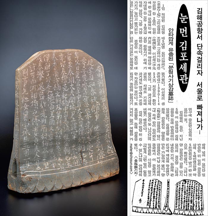 記事の内容はこうだ。98年5月に密売団が李先斉墓誌を日本で売りさばこうとしたが、金海空港文化財鑑定官室の楊猛準(ヤン・メンジュン)=65、元釜山市立博物館長=、チェ・チュンウク(57)両鑑定委員が、この遺物の価値に目を留めた。楊鑑定委員は「私の首に刃を向けられても、これは出さない」と搬出を阻止し、チェ鑑定委員は墓誌の表・裏の絵を描いて象眼の文字も一つずつ書き記し、文化財管理局(現在の文化財庁)に通報した。1カ月後、密売団は金浦空港で鑑定を経ることなく遺物を持ち出すことに成功した。一行は韓国に戻った後、検察に摘発されたが、既に500万円で日本の骨董(こっとう)商に墓誌を売り渡した後だった。