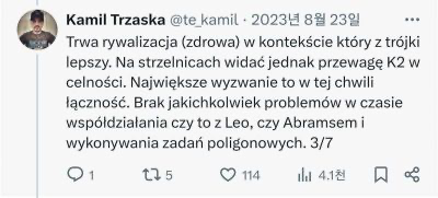 https://www.polska-zbrojna.pl/Mobile/ArticleShow/42580사실 저는 Abrams 보다 더 좋아합니다 . 연료 소모가 적고, 더욱 발전된 사격 통제 시스템과 약간 더 긴 총신을 갖추고 있습니다.