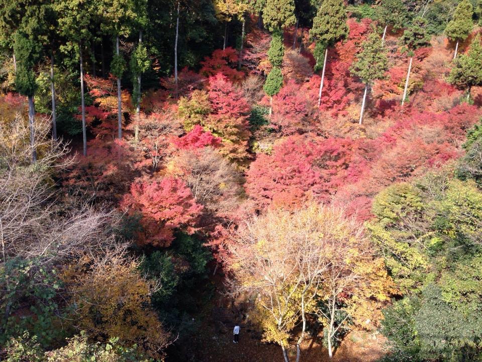 緑色、黄色、赤色、茶色が周辺の樹木に同時に発生する多様で綺麗な紅葉は出来ない。