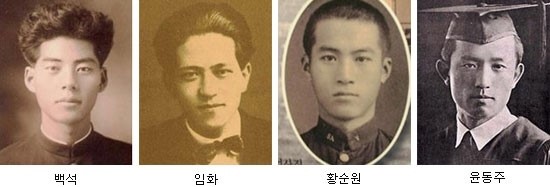 왼쪽부터 백석(白石), 임화(林和), 황순원, 윤동주입니다.>>1
