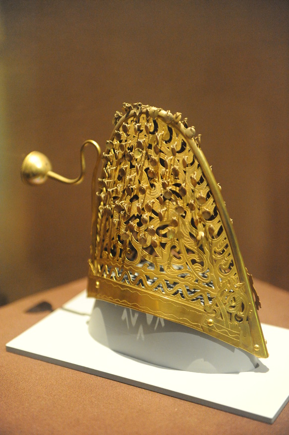 日本の金冠の場合は、出土したものはボロボロで、復元したものを飾ってある