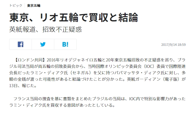 영국 언론 "일본, 도쿄올림픽 유치, IOC 위원 매수" 결론