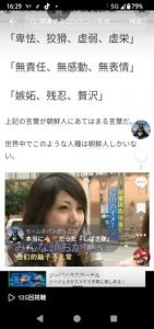 >特定の国や民族、特に韓国や中国などに対して、強い嫌悪感や差別的な言動を繰り返します。