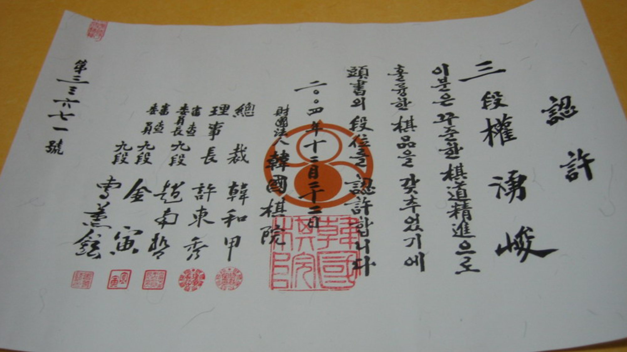 それとも、趙南哲氏が師事した日本の囲碁界に敬意を表して今でも漢字を使って免状を発行しているのですか?