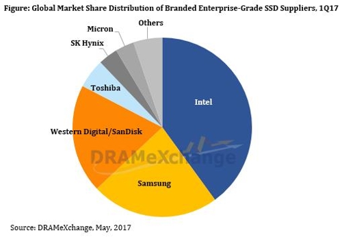 기업용 SSD시장의 경우 인텔이 40%, 삼성 25%, WD 20%이하를 점유중이다.
