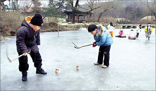 鉛の塊が吹っ飛んでくるベーゴマよりは周辺被害が少ない。なんか朝鮮人っぽい遊びだね・・・