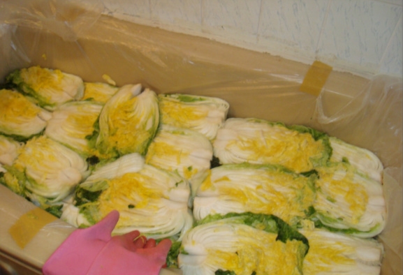 キムチ名人1号の金順子(キム・スンジャ)大韓民国キムチ協会会長と共にキムチを漬け込んだ。