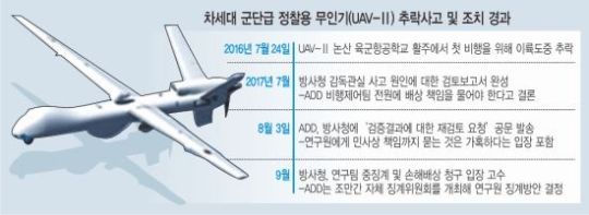 국방과학연구소(ADD) 주도로 개발 중인 차세대 군단급 정찰용 무인기(UAV-Ⅱ)가 지난해 첫 시험비행 도중 추락한 사실이 22일 확인됐다.