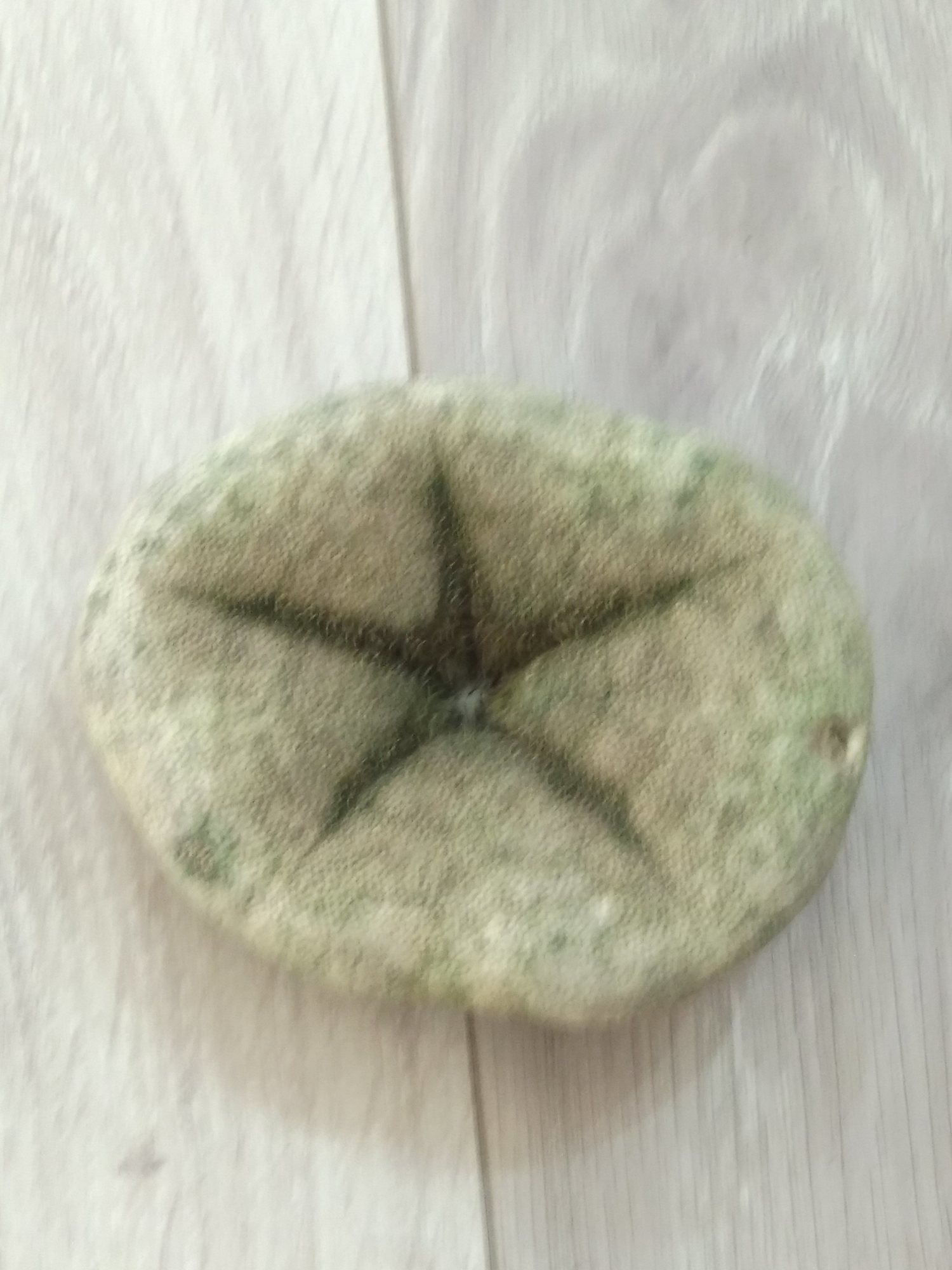 生きている時は茶色っぽいんだけど、死んだら白くなる。表面の模様が素敵です。英語ではsand dollarsと言います。>>16