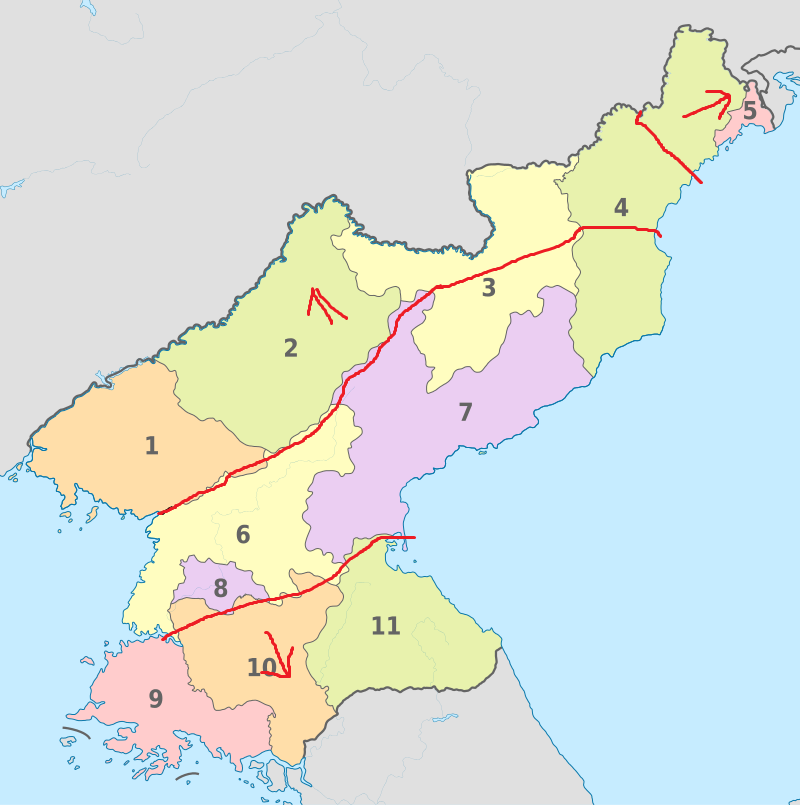 残念ながら、北朝鮮は気候が冷涼で農業(特に米作)に向かず、逆に鉱工業は発展の余地が大きく、本来は韓国とセットで一つの国であるべき土地。分割してごく一部だけ北朝鮮領土として残したとしても、自活していくことは不可能。