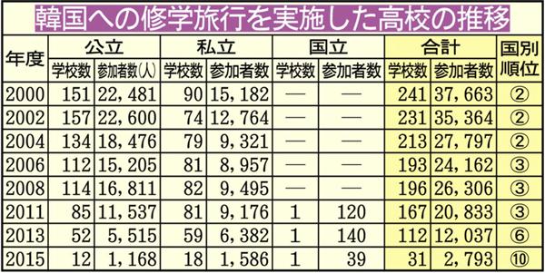 「韓国修学旅行が激減」10年超で10分の1に 反日的言動きっかけ、半島危機が追い打ち