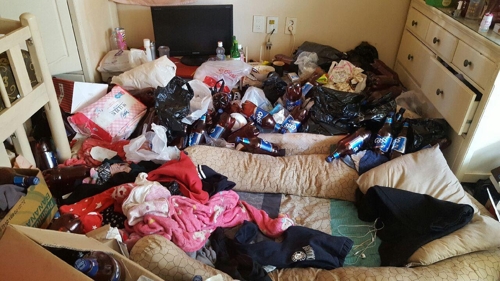 밥솥에는 곰팡이 핀 밥이, 냉장고 안에는 상한 반찬이 가득했고, 싱크대에는 음식물 쓰레기가 널려 악취가 진동했다.현장에 출동한 한 경찰관은 "아이들이 누워서 다리 뻗을 공간을 제외하곤 집 안이 모두 쓰레기로 가득 차 있었다"며 "악취가 워낙 심해 사람이 살 수 있는 환경이 아니었다"고 전했다.