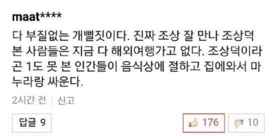 全部無駄な犬ポルジツだ。 本当に先祖よく会って先祖の恩恵を受けた人たちは今全部海外旅行に行っていない。 先祖徳は一つも見なかった人間たちが料理上に礼をして家に来て妻と戦う。羨ましい