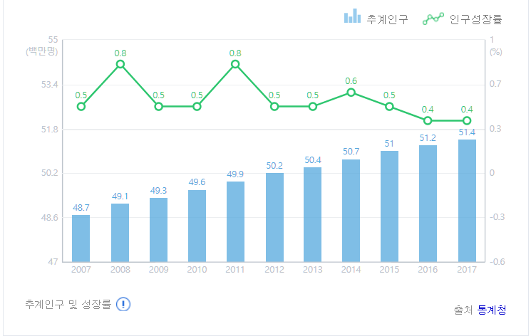 韓国の人口 約0.5億人