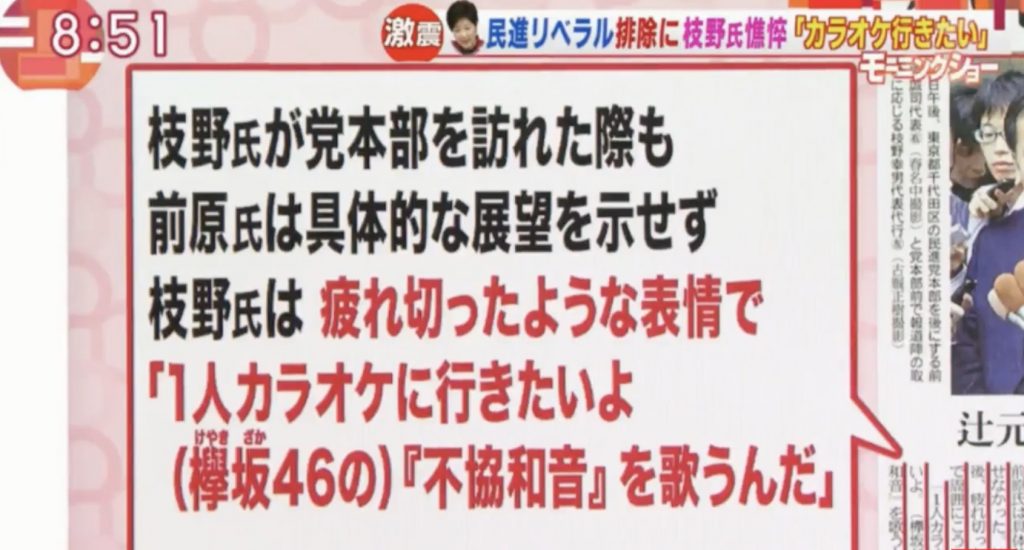 真ん中は希望か無所属かと寝言をいってるが、希望は受け入れない。