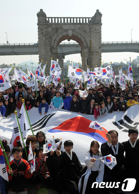 その独立門の前で「日本からの独立」を祝う朝鮮人たち…