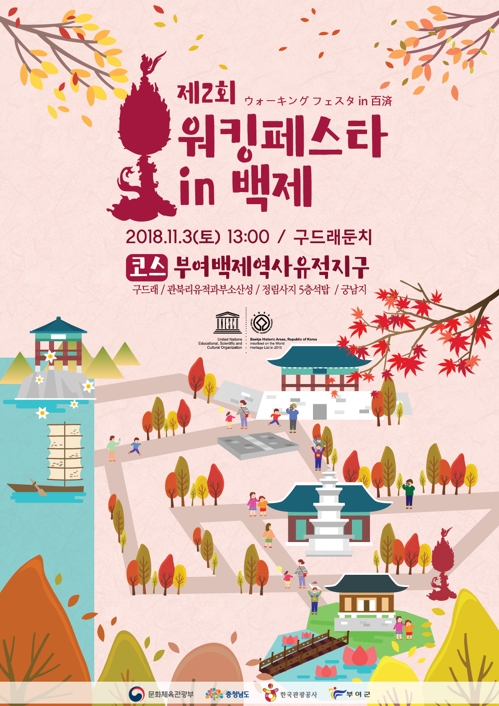 【ソウル聯合ニュース】百済の古都として知られる韓国西部の忠清南道・扶余で11月3日に「第2回ウオーキングフェスタin百済」が開催される。