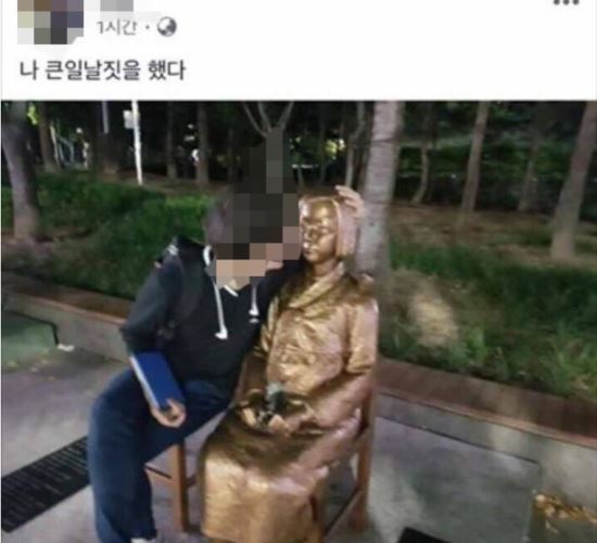 대구에서 소녀상에 입맞춤하려고 했던 남성, SNS에서 논란.