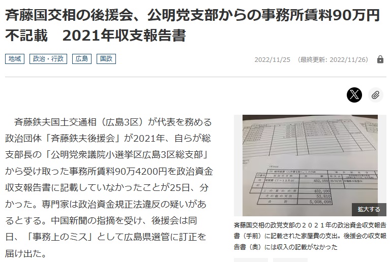 協力求めるならそれくらいはやれよニダ。公明党の斉藤鉄夫代表は自公会談前10月6日議員会館の自室で在日中国大使と面会、中共からどんな指示があったのでしょう?
