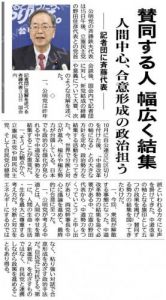 公明党の西田実仁幹事長は18日、立憲民主党と結党した新党「中道改革連合」を巡り、集団的自衛権の限定行使を可能とする安全保障関連法について「当然合憲だ。(19日に発表する)基本政策に書く。それに賛同する人が参加するのが新党だ」と語った。東京都内で記者団の取材に応じた。
