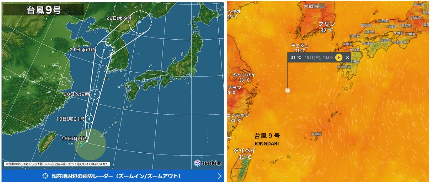 9号は勢力維持したまま中国直撃台風13号(インニョン・YUN-YEUNG)