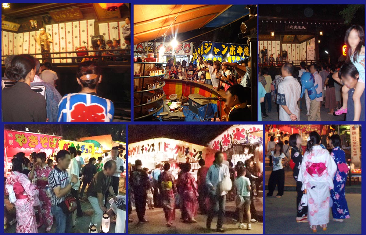あと、神社の祭りのほかには、盆踊りといって、夏にみんなで舞台の周りで踊るのもあるね。