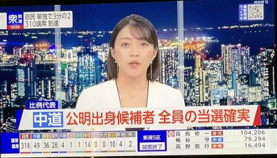 一方、自民は公示前から118増やして316議席となり、維新も2増の36議席となった。
