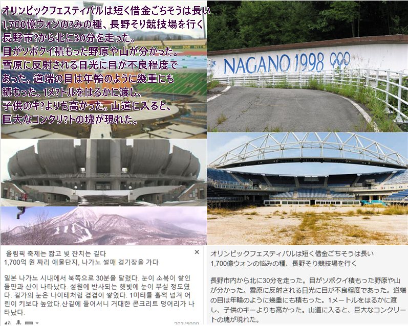 20년 째 빚을 갚고 있는 나가노 올림픽을 치룬 주제에 말이 많다.