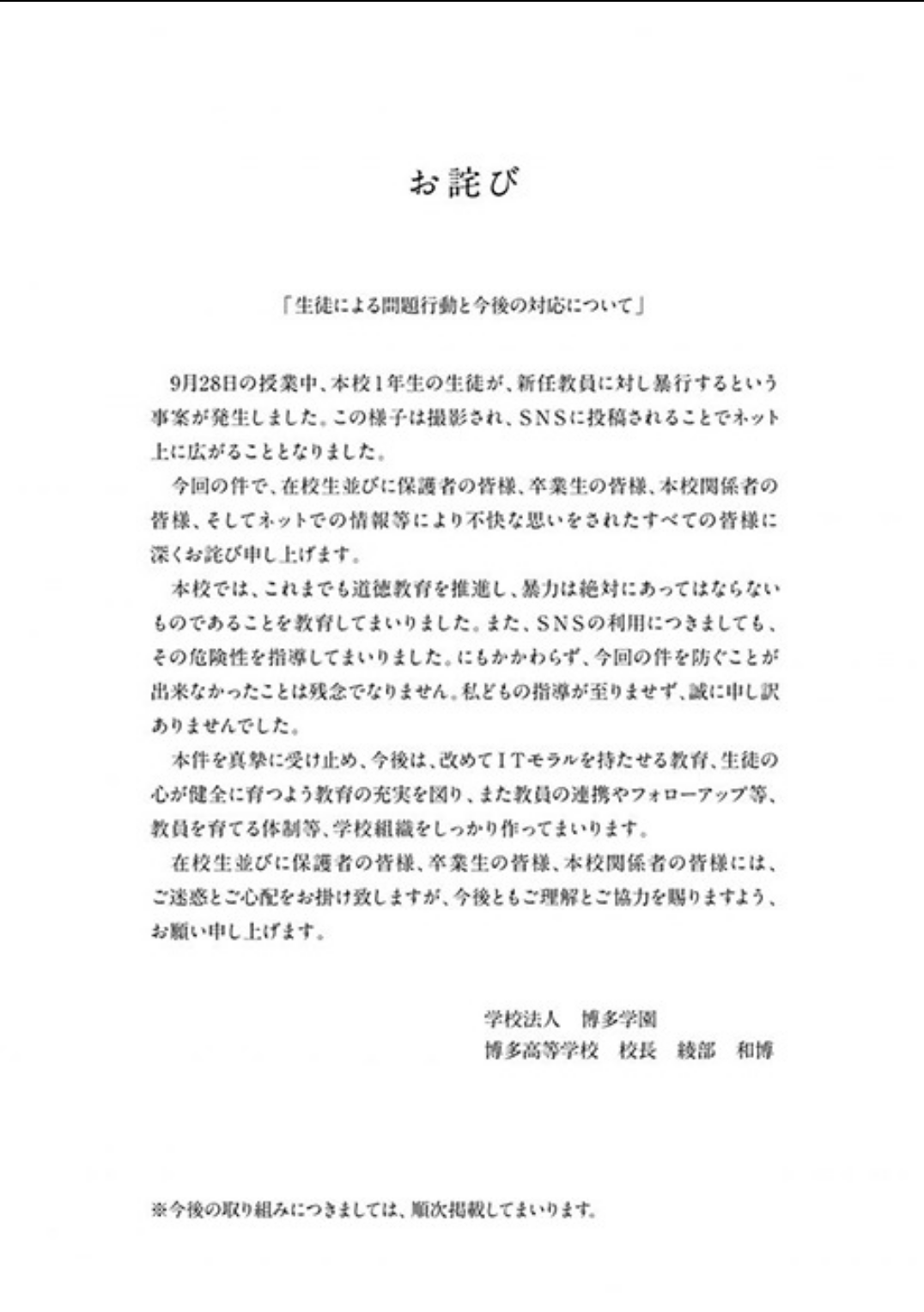 そして、その生徒は逮捕され、今は学校も退学しています。