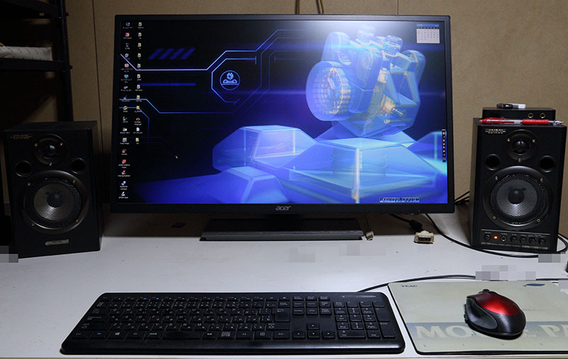マウスは写ってないけど右下に青いのがあってそれがメイン用