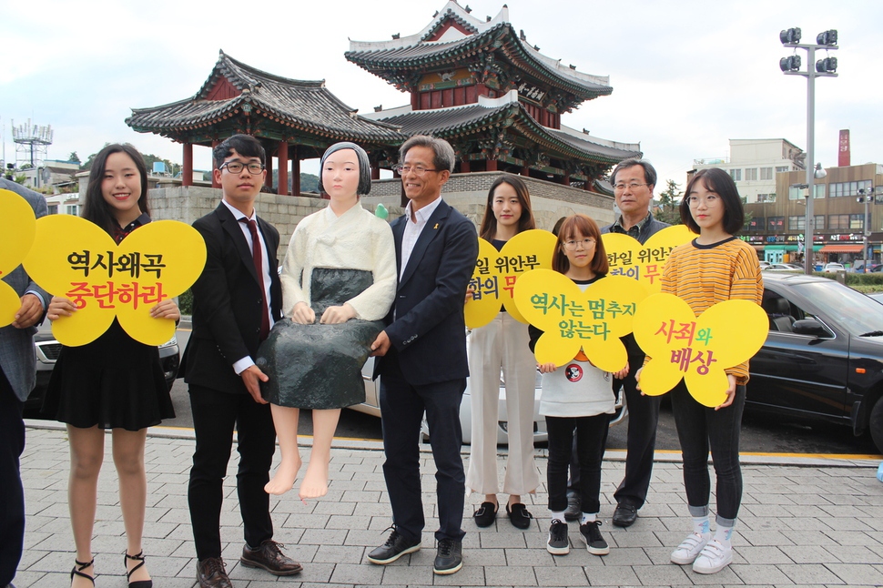 지난 2일 추석 연휴기간에 전북 전주를 찾은 평화의 소녀상이 연휴가 끝난 뒤에도 당분간 전북에서 머문다.