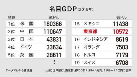 日本首都圏(東京千葉神奈川埼玉)GDP…1兆5369億ドル