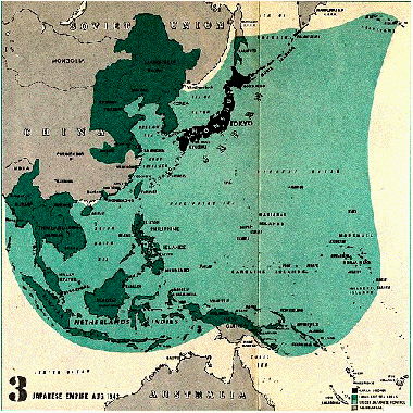 陸上の濃い緑と洋上の薄い緑は勢力圏(under japanese control)なので図そのものは合っています。>>1