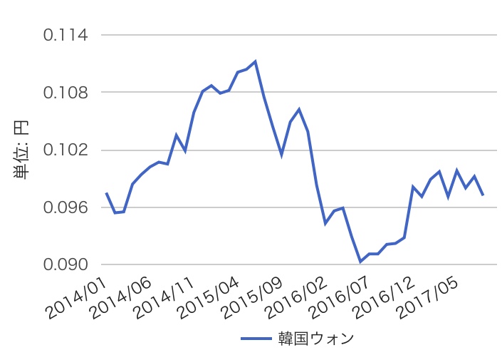 ウォンが少なくなるから貨幣価値が高まってウォン高になってる。