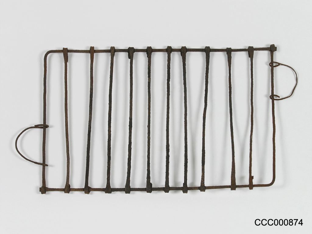 金網にサバや豚肉を入れて炭火で焼いて