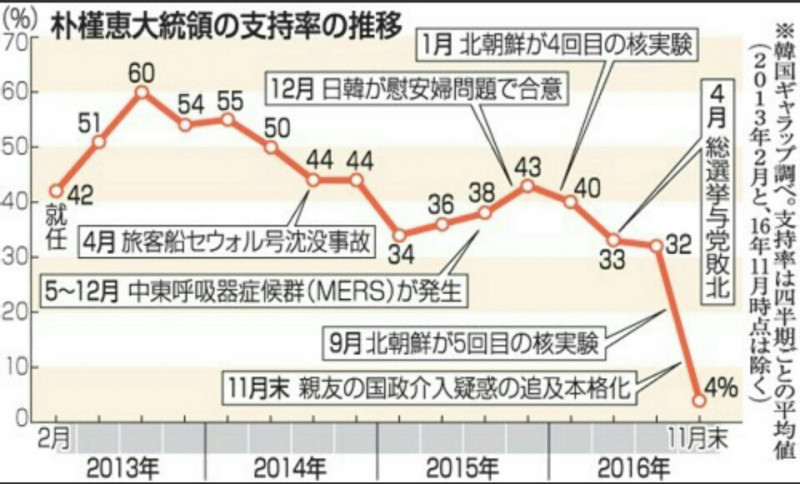 実は慰安婦合意では朴槿恵の支持率は落ちていない