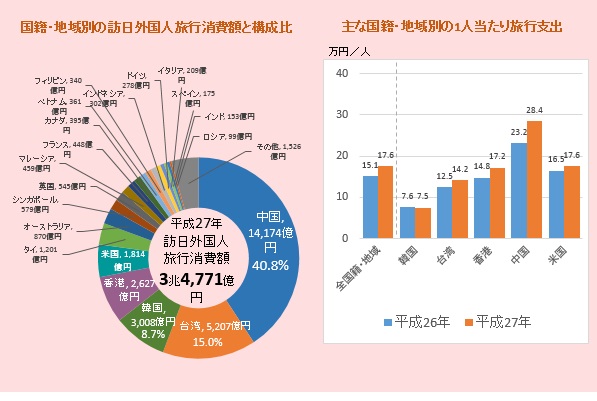 17年の訪日客のうち、絶対数・伸び率ともに圧倒的な存在感を示しているのが韓国人だ。16年に訪日した韓国人は500万人、同国民のおよそ10人に1人に当たる数字に達しているが、今年はこれに加えて毎月前年比2桁の伸びをみせる勢い。1-8月の累計では、数でこそ466万800人と中国(488万2200人)に及ばないものの、前年同期からの伸び率はなんと41.7%にもなっている。