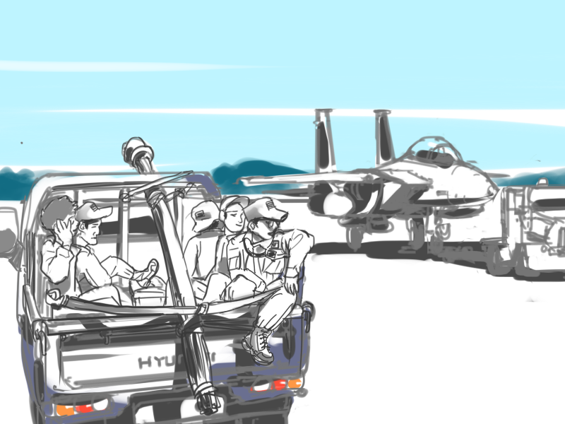 활주로 안에서 작업하다가, 전투기를 견인해 가는 모습을 봤습니다.