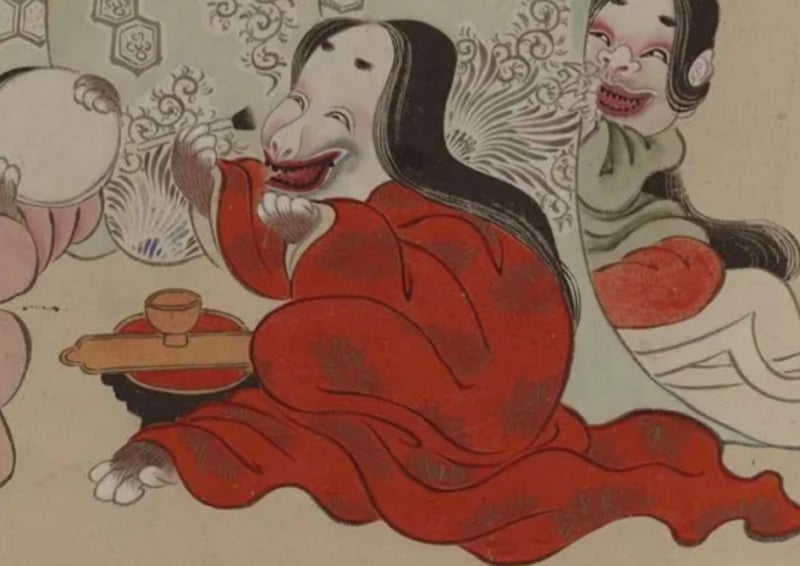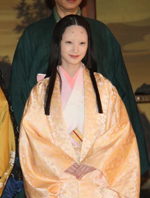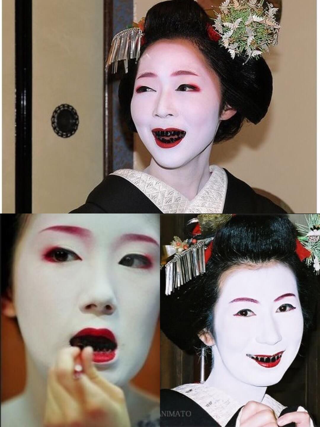 白粉で塗られた顔は、現代では奇異に見えるかもしれないが、近代以前の弱い照明下では女性の肌を白く艶かしく見せる効果があった。
